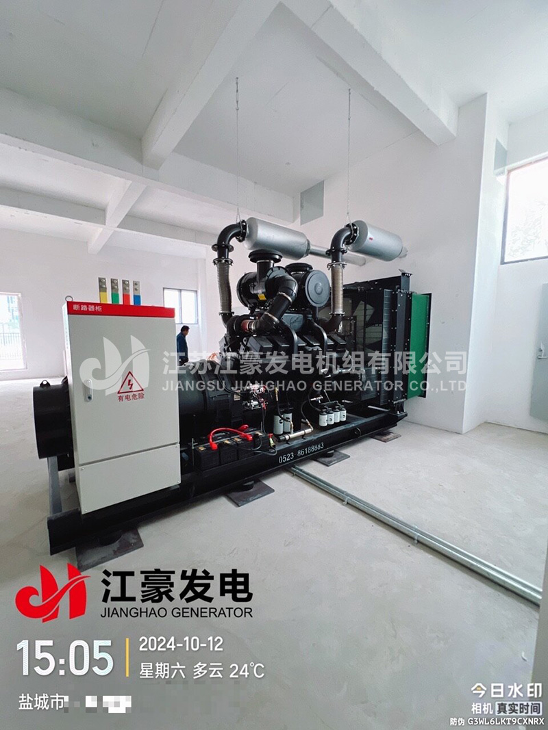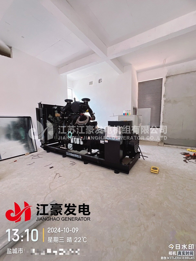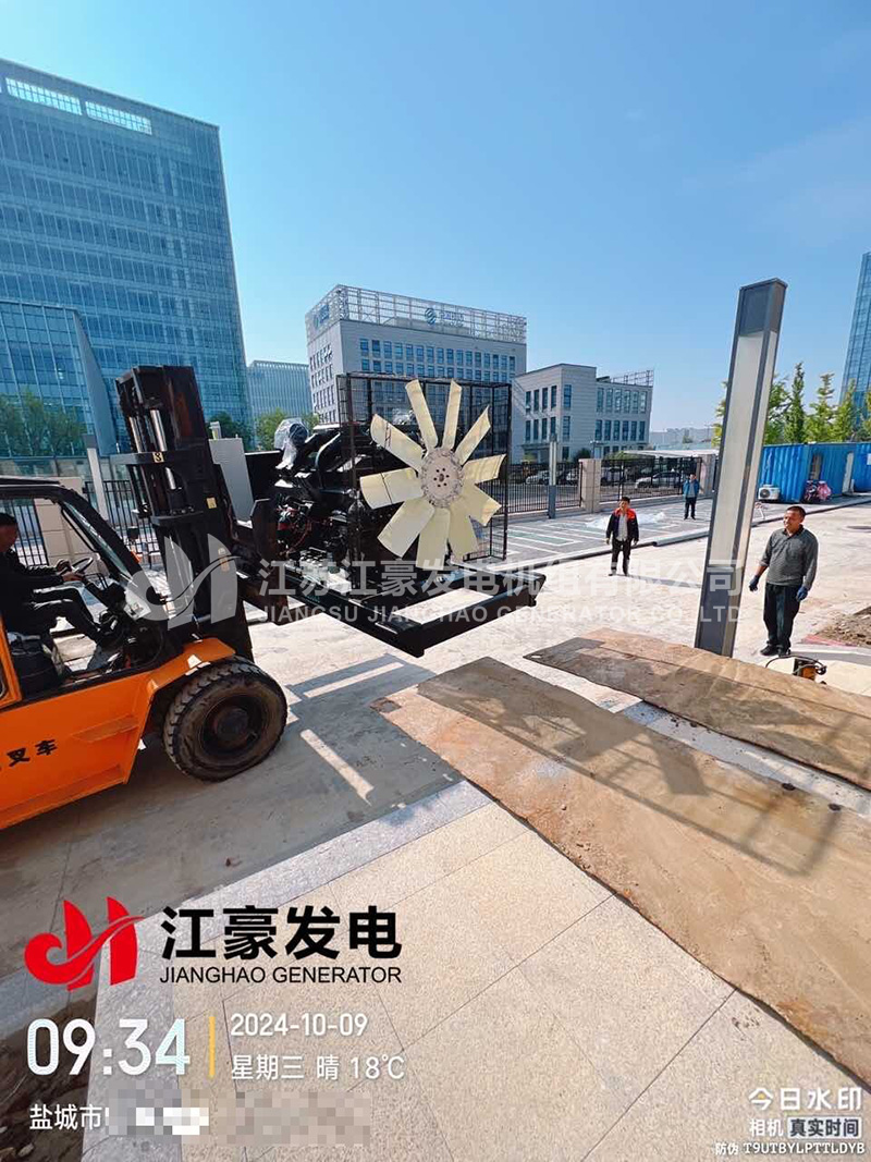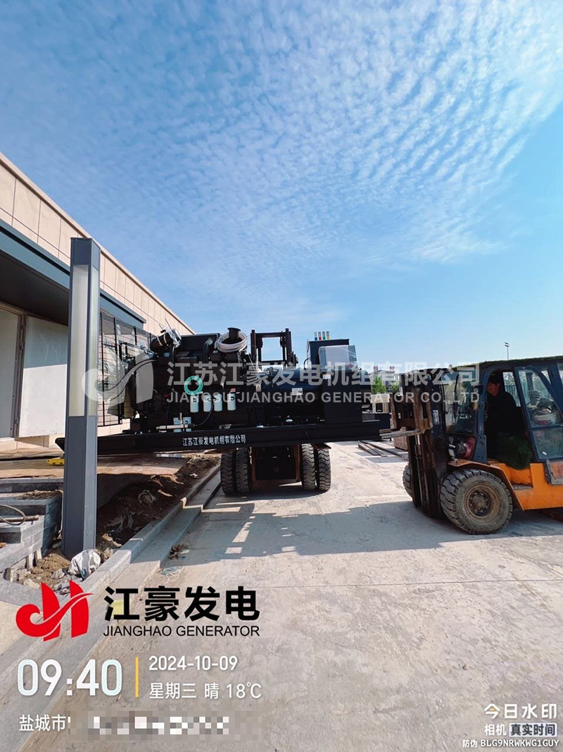 江蘇鹽城一臺640kW康明斯柴油發(fā)電機組發(fā)貨安裝就位交付使用