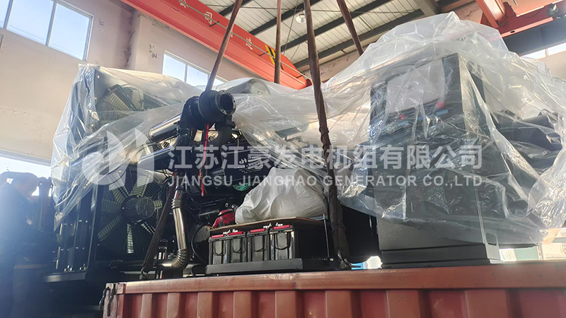一臺1000kW乾能動力柴油發電機組發貨,我公司工程師對機組進行了全面的出廠前檢測調試后,各項指標符合國家標準,下圖為機組出廠現場: