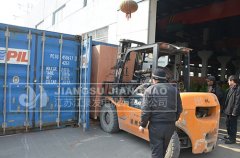 我公司年前成功出廠一批由康明斯發動機提供動力的柴油發電機組,總數共計15臺 下圖為裝柜照片 工人正在用鏟車將包裝好的發電機組裝入集裝箱中 吊車將發電機組吊上拖車 拖車駛向港口